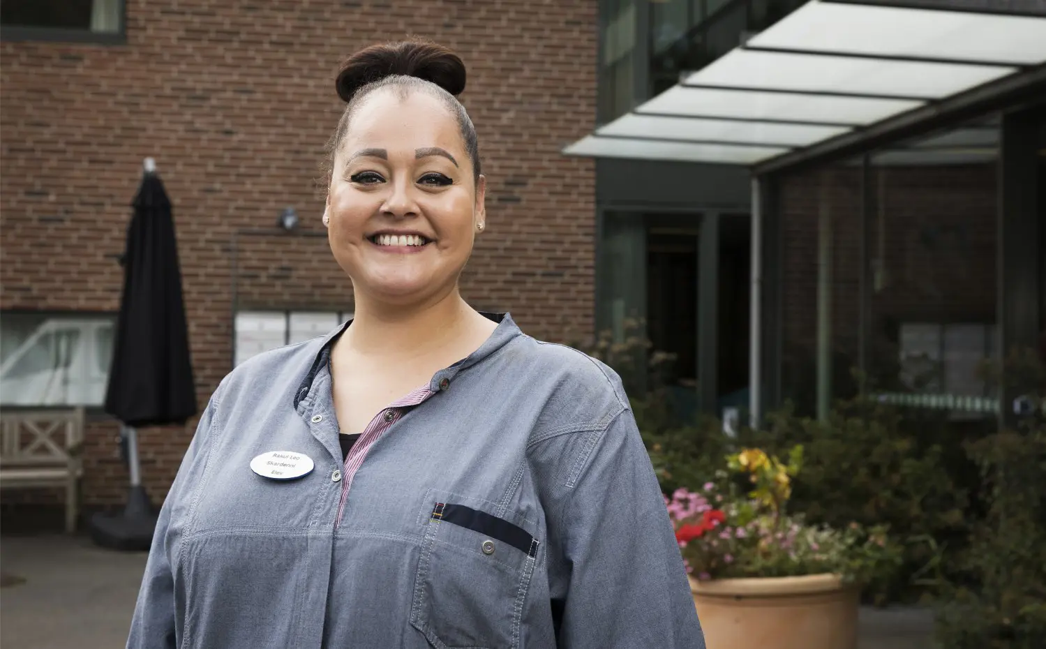 "Mange af beboerne har demens og glemmer, hvem jeg er, så det er vigtigt at bevare den positive energi. Det har jeg heldigvis ingen problemer med – jeg lærer en masse hele tiden. Jeg kan varmt anbefale andre, at de også tager en uddannelse med 110 procent dagpenge, hvis de får mulighed for det – og så er der ikke matematik på sosu-uddannelsen," ler Rakul Leo Skarðenni.