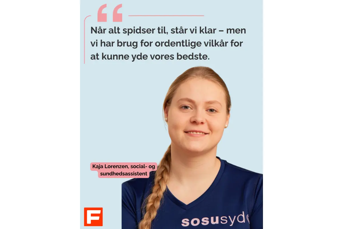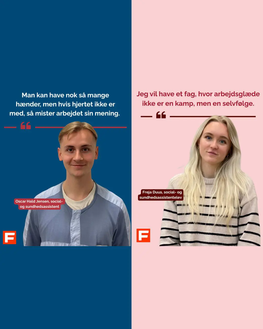 Pædagogmedhjælper Jonas Macys vil have en værdig tilbagetrækning, når pension kalder, mens social- og sundhedsassistent Kaja Lorenzen vil have ordentlige vilkår til at kunne yde sit bedste.