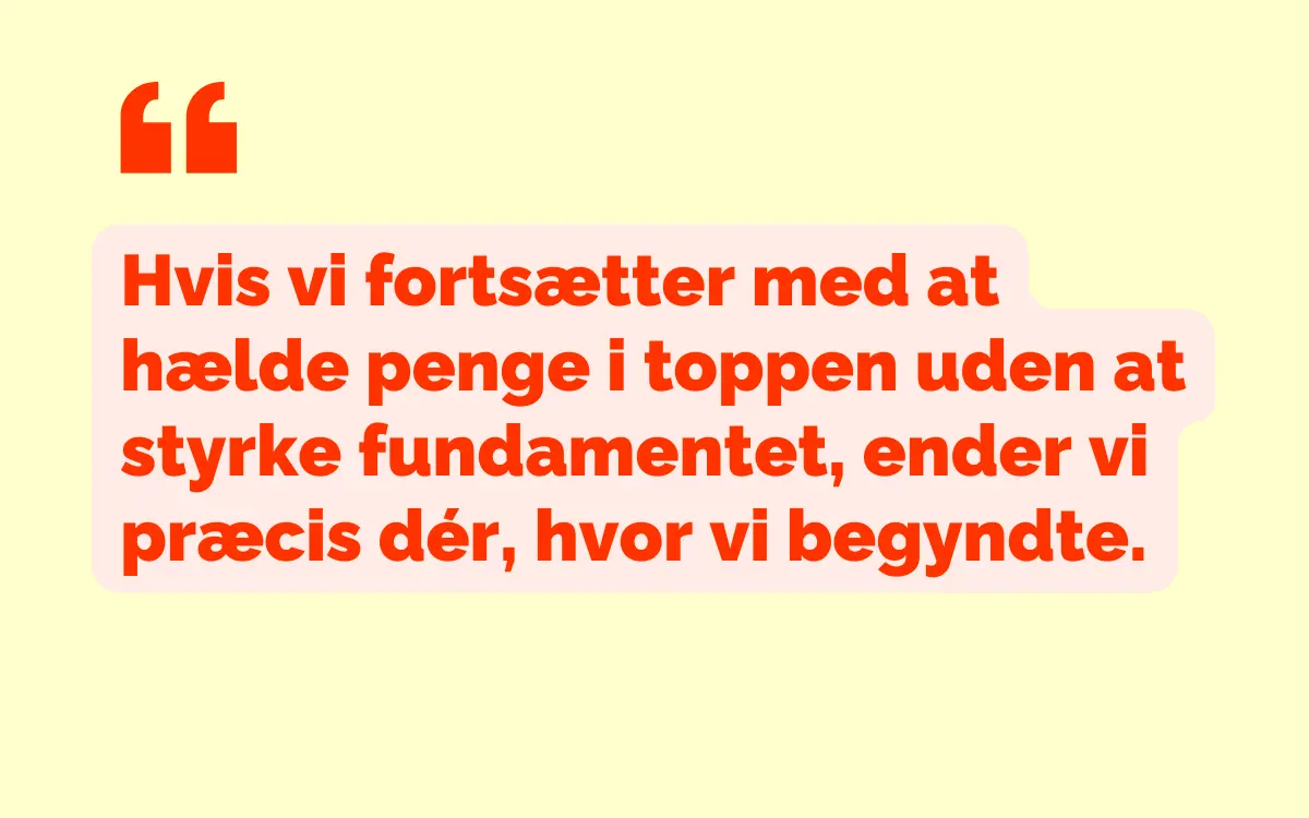 For hvis vi fortsætter med at hælde penge i toppen uden at styrke fundamentet, ender vi præcis dér, hvor vi begyndte: Med dyre løsninger, tomme stillinger – og et system, der stadig kører i tomgang.