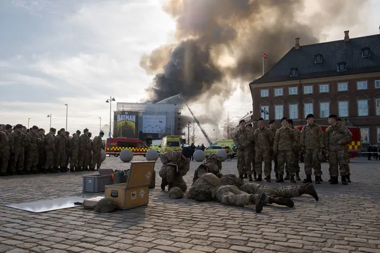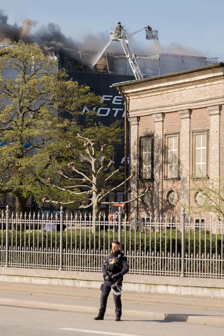 Den over 400 år gamle bygning Børsen i centrum af København er i brand. Omkring 200 brandfolk, soldater og politibetjente har kæmpet mod branden siden tirsdag morgen.