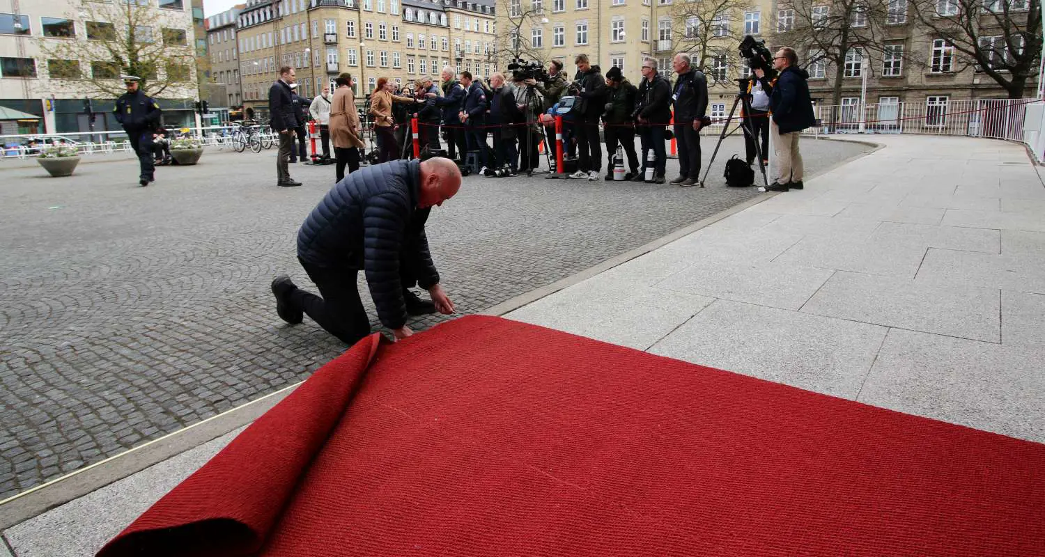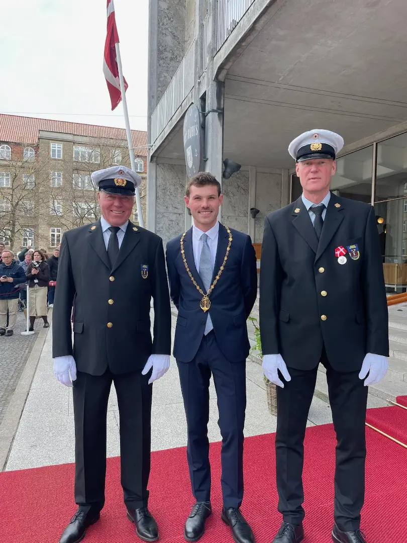 Over rådhuset vajede Dannebrog og foran den ikoniske bygning var den røde løber rullet sirligt ud. Og her stod rådhusbetjent Gert Ring Nielsen klar i fin uniform for at tage godt imod de royale gæster.