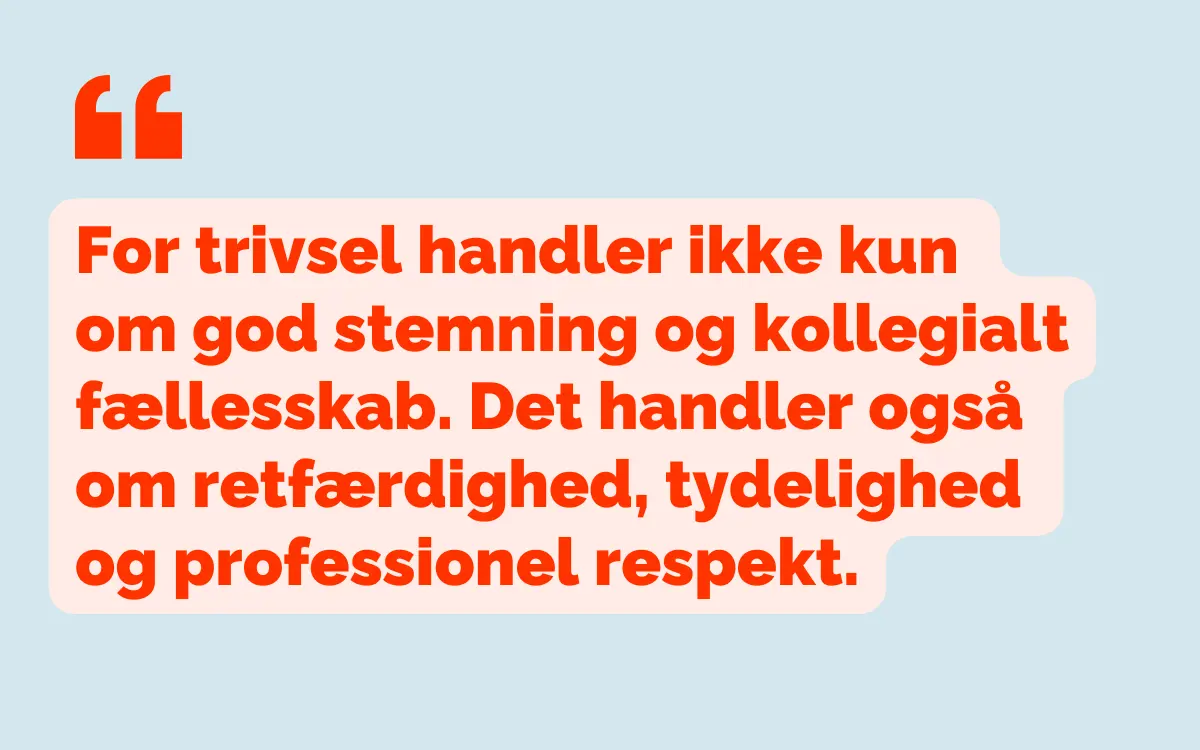 For trivsel handler ikke kun om god stemning og kollegialt fællesskab. Det handler også om retfærdighed, tydelighed og professionel respekt.