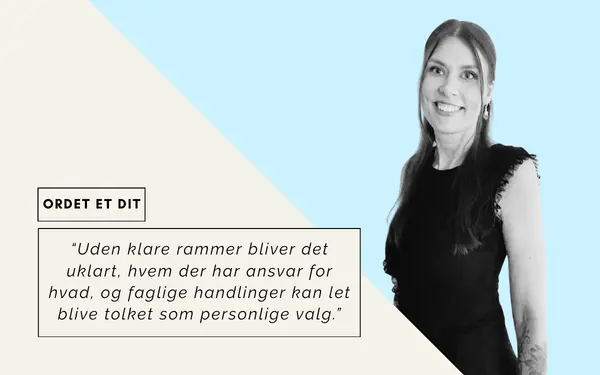 Men når roller og ansvar er uklare, opstår der let misforståelser og frustrationer. Uden klare rammer bliver det uklart, hvem der har ansvar for hvad, og faglige handlinger kan let blive tolket som personlige valg.