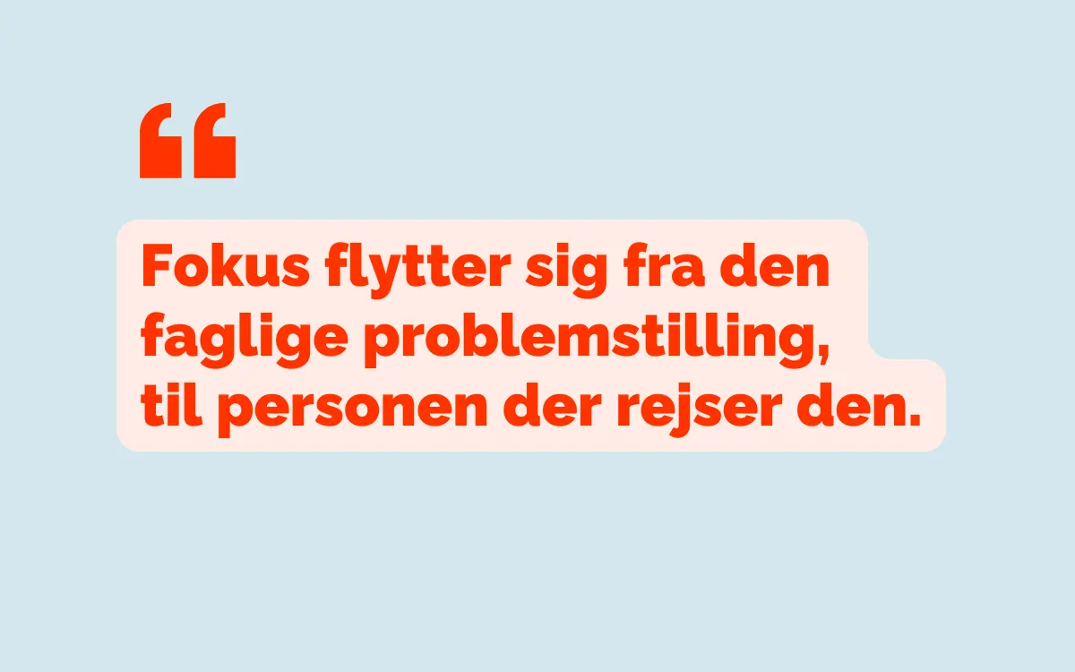 Det betyder også, at medarbejdere der påpeger fejl eller henviser til gældende retningslinjer, risikerer at blive opfattet som nogen, der blander sig – frem for som fagpersoner, der varetager deres ansvar.