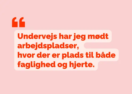Undervejs har jeg mødt arbejdspladser, hvor der er plads til både faglighed og hjerte. Hvor man passer på hinanden, og hvor glæden ved arbejdet kan mærkes.