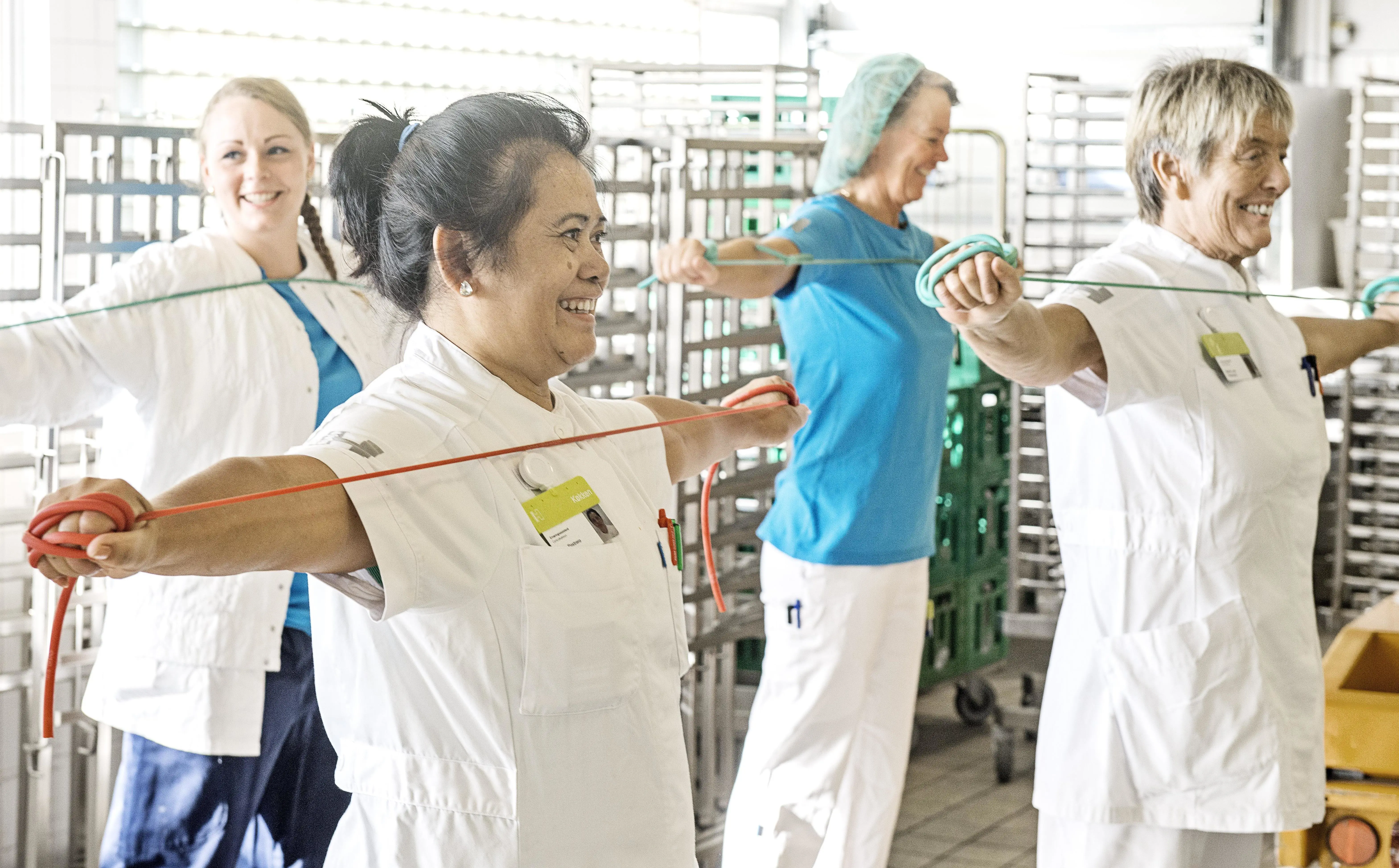 På Glostrup Hospital kan de ansatte i køkkenet træne i arbejdstiden. Det øger produktiviteten og nedsætter sygefraværet.