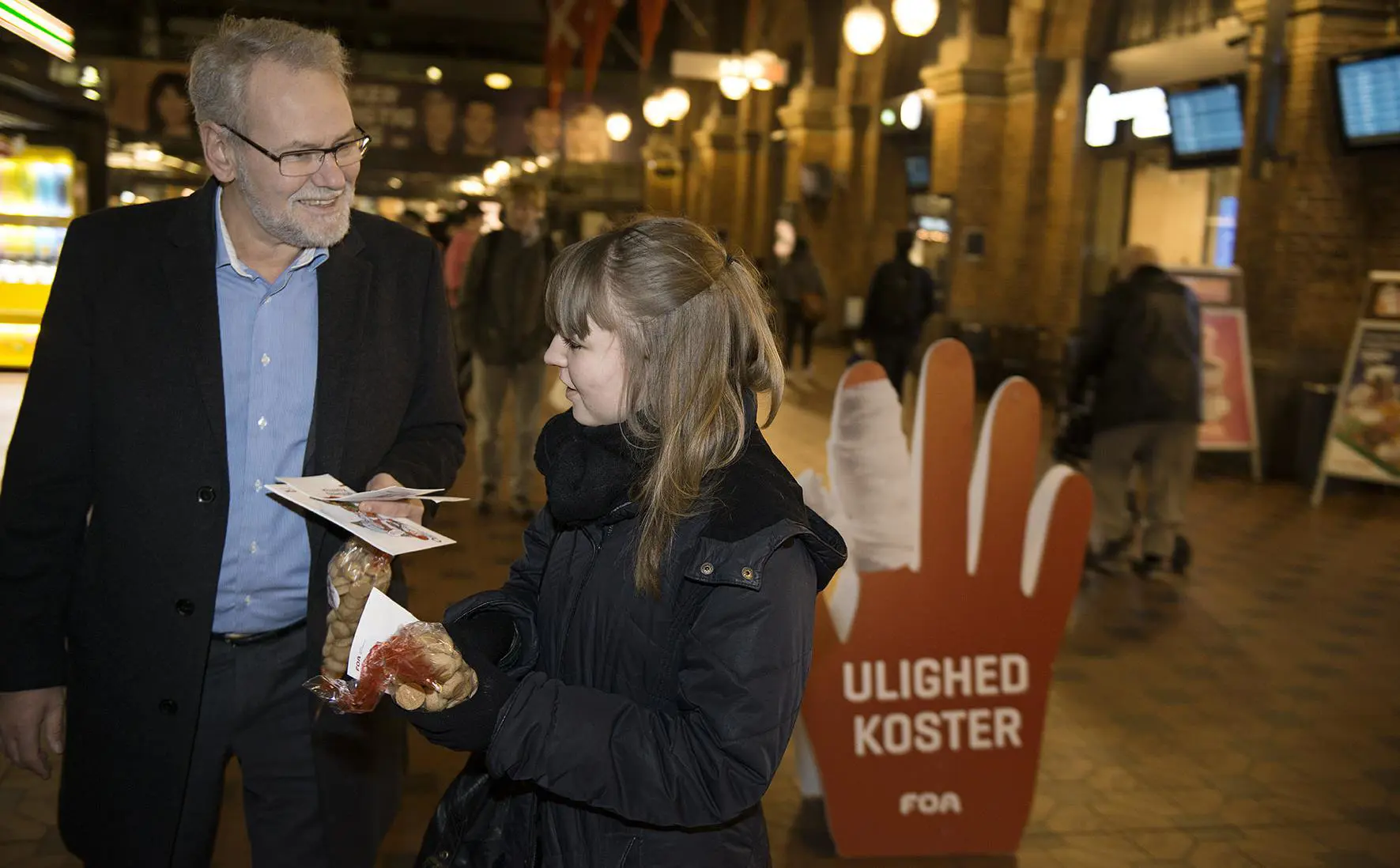 Her har repræsentanter for FOA været på gaden fra morgenstunden for at gøre opmærksom på den stigende ulighed i Danmark.