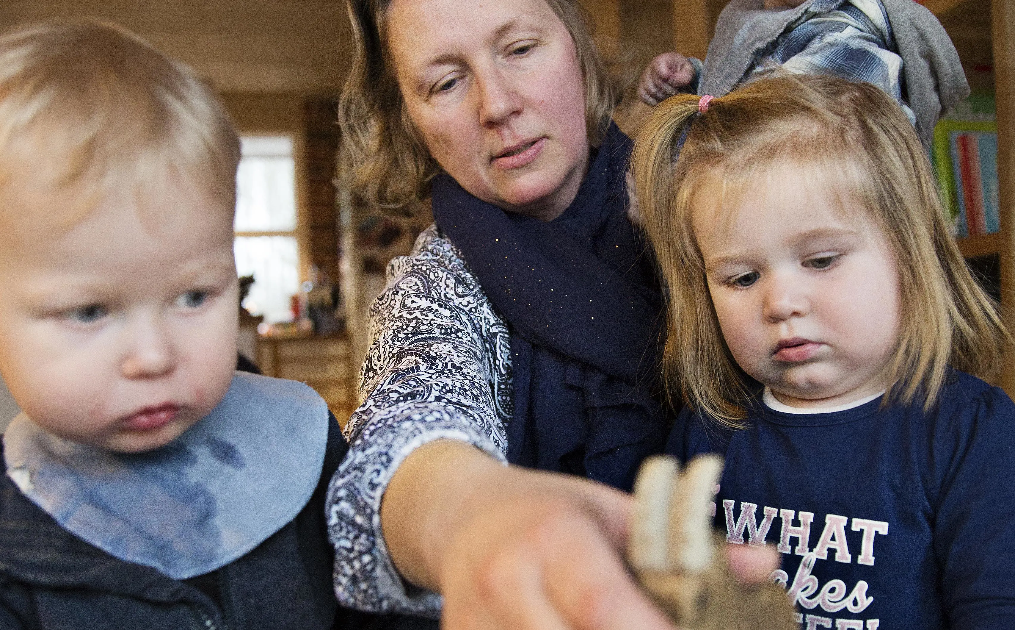 På køkkenbordet hjemme hos Laila ligger der som noget nyt også en logbog, hvor hun skriver om sine erfaringer med at skabe fortællinger. Når dagplejegruppen mødes hver fredag, udveksler de idéer og erfaringer. Tanken bag er, at man bliver dygtigere ved at reflektere sammen og dermed hele tiden bygger oven på den viden, man har.Sådan er det også med børnene. For hver gang, de har bordteatret fremme, lever de sig mere ind i stykket, og de store børn laver stemmer og dyrelyde.