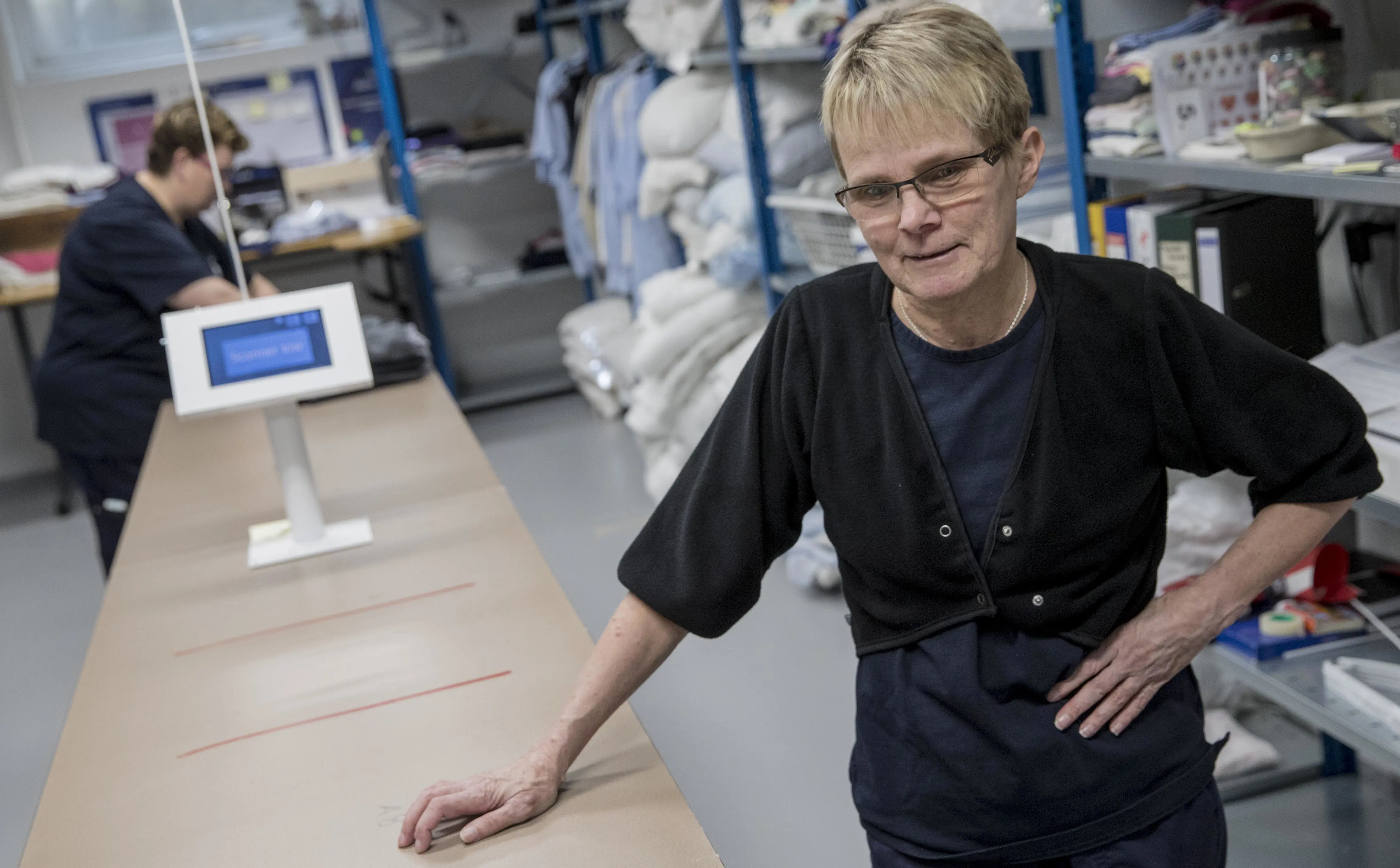 Et lille stykke teknologi gør håndteringen af rent vasketøj langt nemmere. Det oplever husassistent Tove Jensen, der ikke længere bruger tid på at lede efter labels i beboernes tøj på Billund Plejecenter. Alt fra sengelinned til bluser bliver sorteret ved hjælp af chips i tøjet og en scanner. Det frigør tid til lidt ekstra rengøring og en sludder med beboerne.
