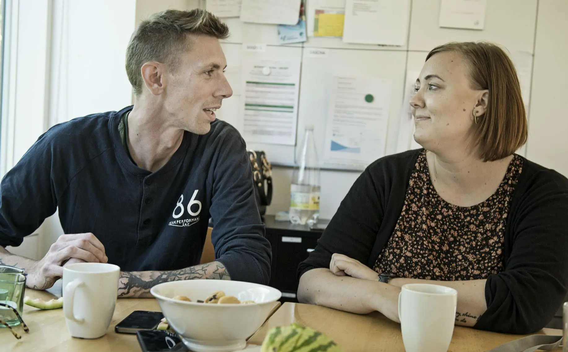 I starten var det lidt svært for de ansatte at forstå idéen om en fælles pause, og der var en smule modstand. Men i dag kan alle se værdien.“Vi slapper selvfølgelig af, vi taler også ind i mellem om arbejdet, men pausen har først og fremmest en social funktion,” siger kollega og socialpædagog Mia Pedersen.