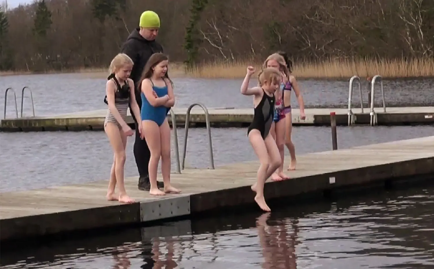 Se seje jyske børn springe i iskold sø