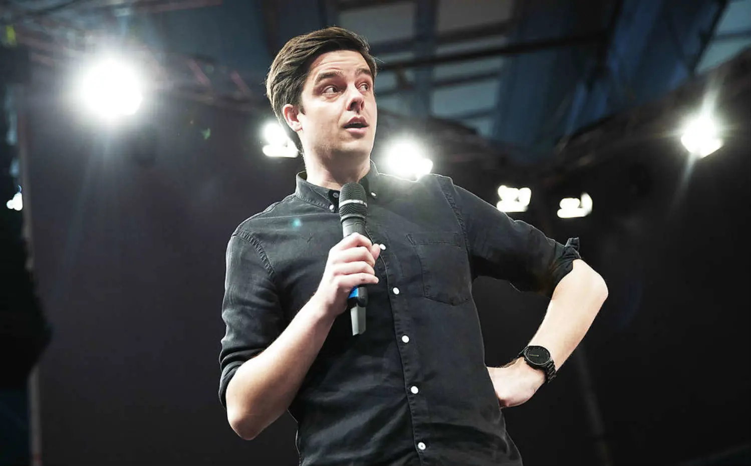 ”Det er blevet svært for mig at finde på noget, der er sjovere end virkeligheden. For virkeligheden er stukket af. Trump er blevet præsident. Og nu diskuterer vi, om vi må holde frokost i arbejdstiden,” siger han til og bliver mødt af et bifald fra salen.”I skal løbe hurtigere. Og I får ikke mere i løn. Nej, nej. Og så skal I stoppe med at holde frokostpause. Men så sætter vi til gengæld afgiften ned på biler. Bare ikke de biler, I har råd til at købe,” joker Michael Schøt.