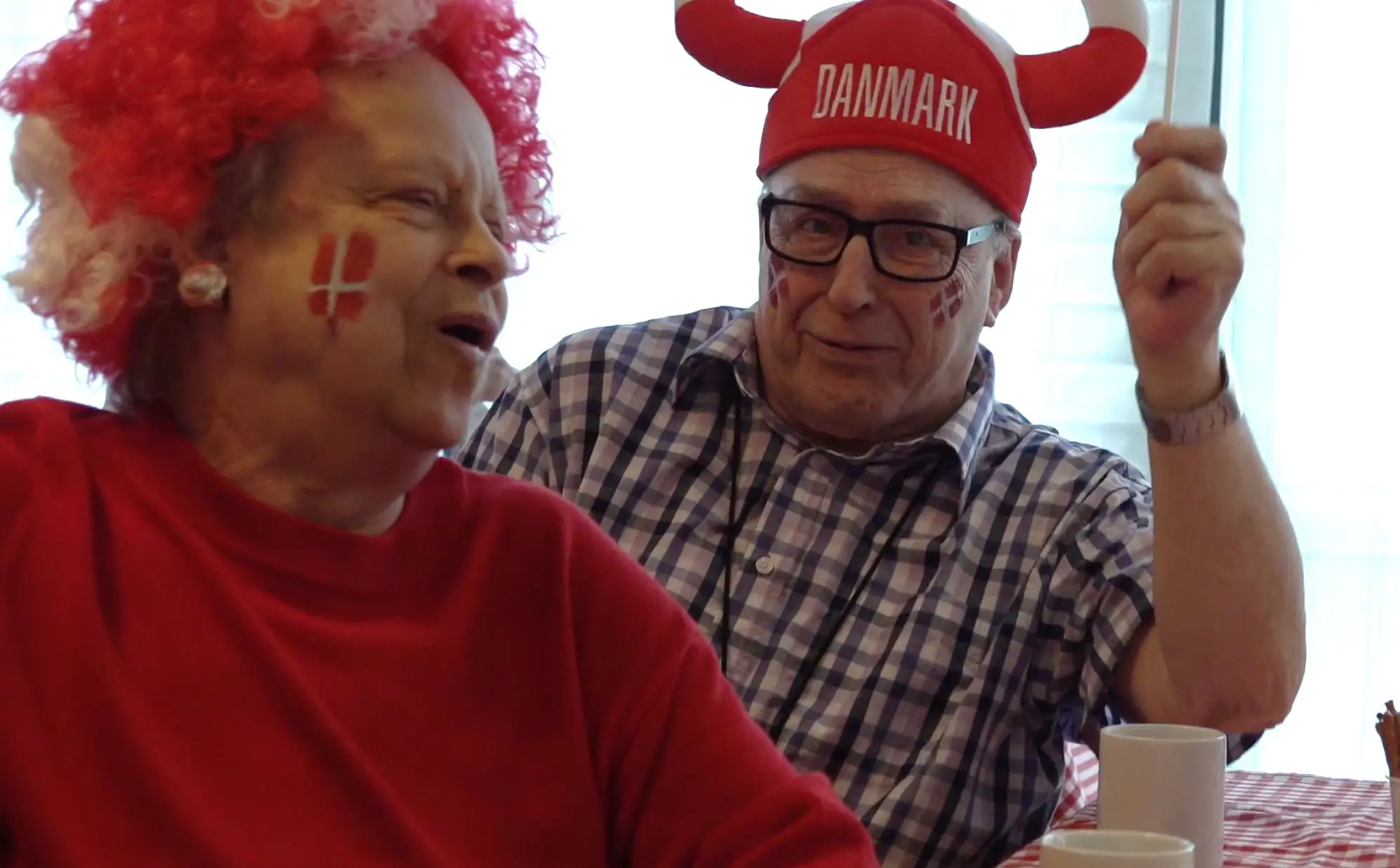 Der var liv og glade dage på Skovsminde Plejecenter, da beboerne så landskamp på storskærm. Den slags arrangementer er vigtige og skaber et tæt sammenhold, siger lederen af plejecentret.