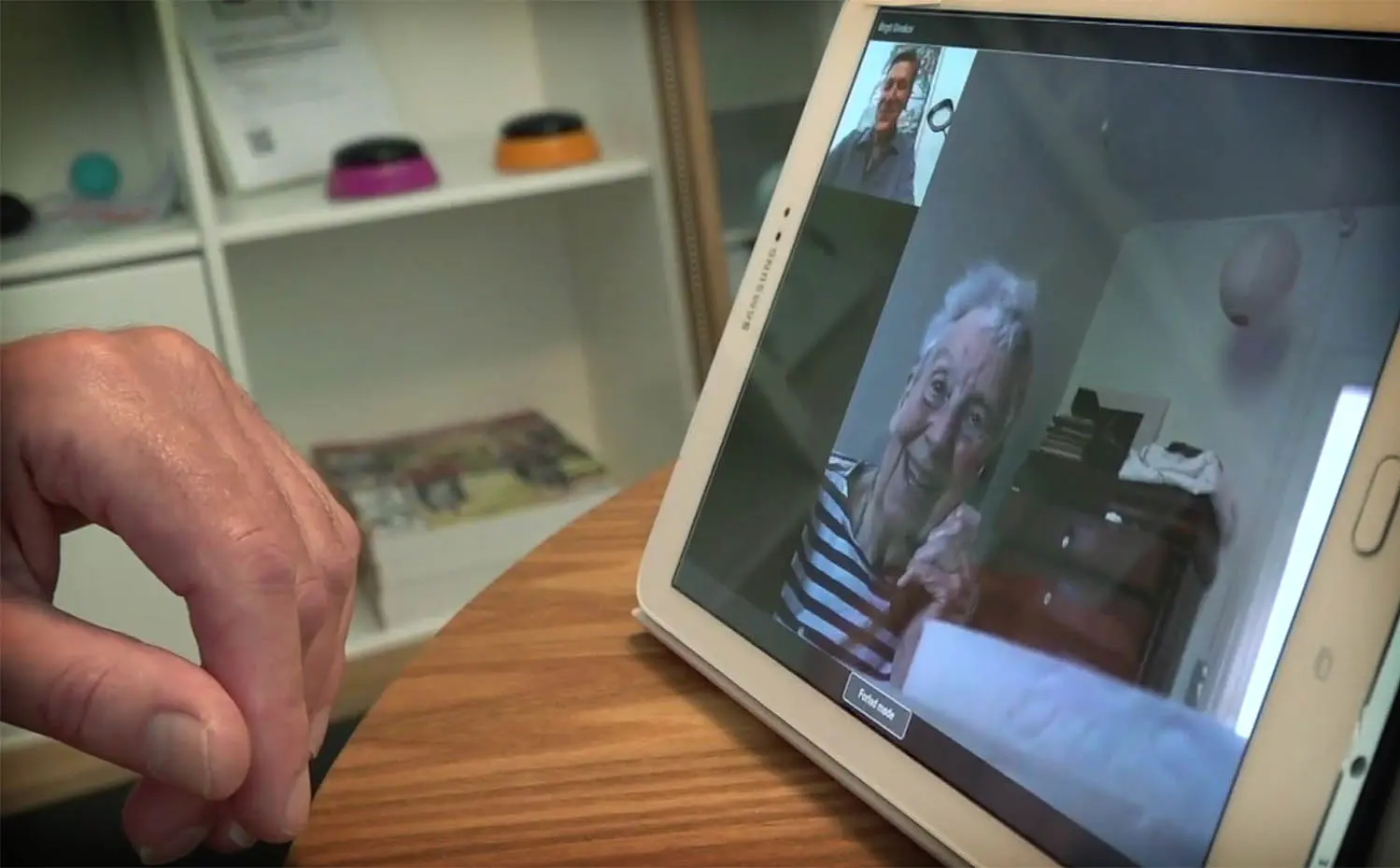 Per er blevet ambassadør for skærmbesøg. Gennem videochat på en tablet vækker plejepersonalet borgerne om morgenen og sørger for, at de får taget deres morgenmedicin. På den måde kan plejerne fokusere på andre opgaver end pillegivning, og borgerne har mere selvbestemmelse over, hvornår de vil vækkes.