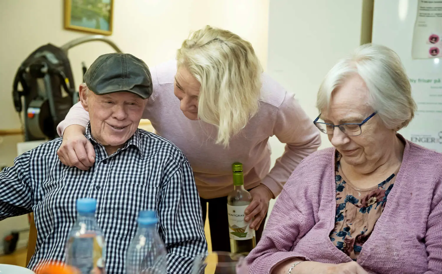 Desiree Ilsøe breder armene ud og smiler stort, da Jytte Frida Poulsen kommer ind i Ferskenhavens køkken. Hun krammer den ældre kvinde og hjælper hende hen til spisebordet, hvor Ole Reinert er i gang med at sætte turkisblå servietter i vinglassene.