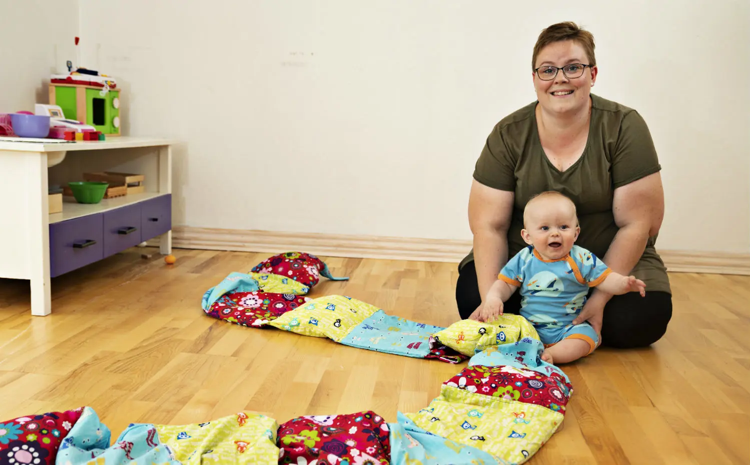 Børnene kan ikke se, hvad der er indeni puderne, og det gør, at de i endnu højere grad skal mærke efter. De synes, det er sjovt, at det er lidt hemmeligt, og de elsker at undersøge med både hænder, mund og fødder. Jeg kan for eksempel spørge: “Kan du finde Duploerne, Lukka?”, og så går der sport i at gætte og mærke løs.