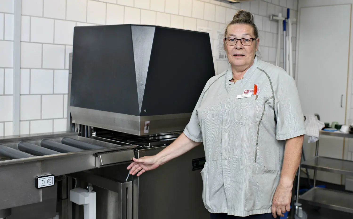 Husassistent Susanne Bønneland kan være med til at sikre en årlig besparelse på næsten 30.000 kroner ved at sænke elforbruget i køkkenet på plejecentret.
