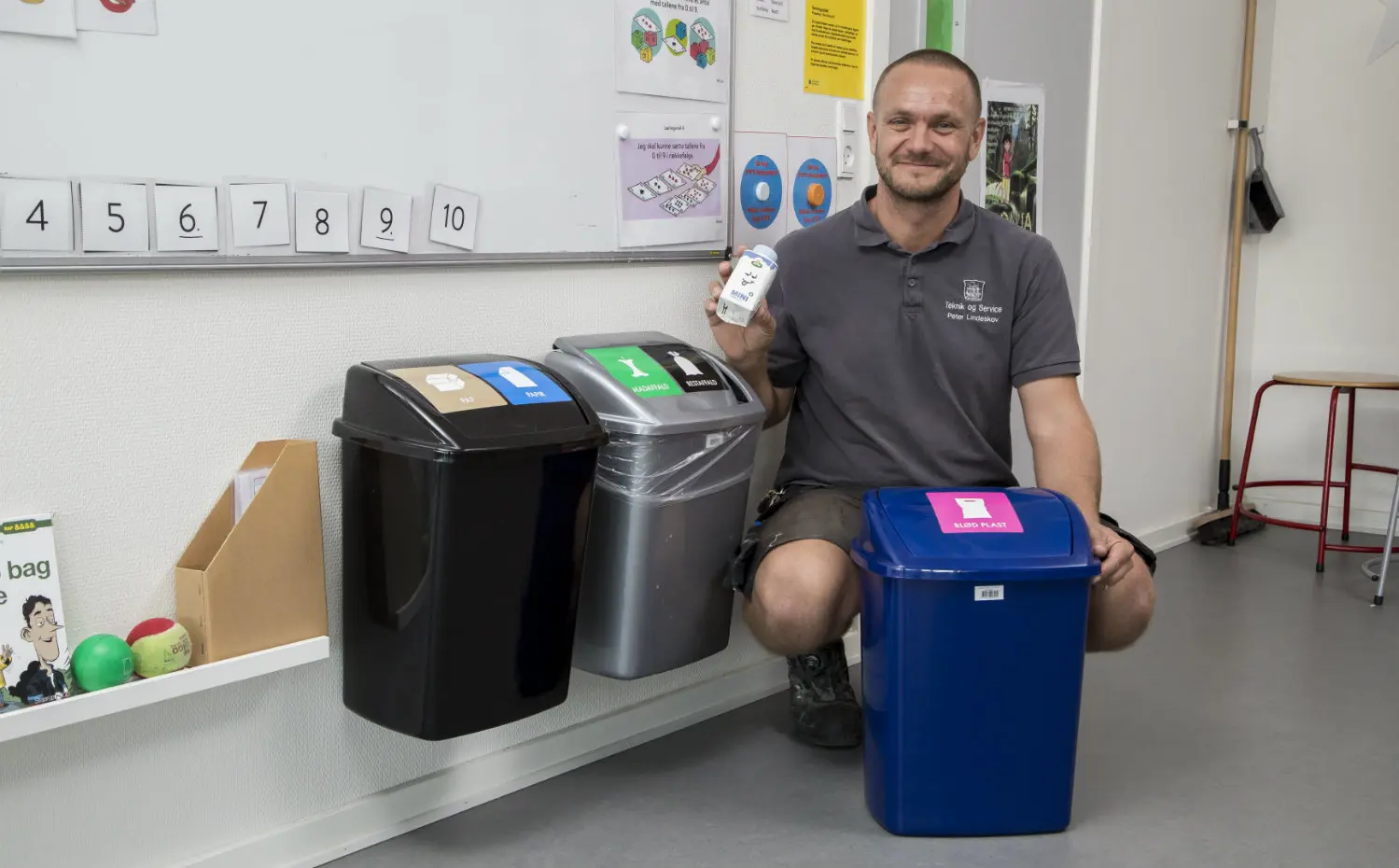 Teknisk serviceleder Peter Lindeskov måtte vore kreativ, da børnene på Bogense Skole ville have mere affaldssortering, end kommunen kunne håndtere.