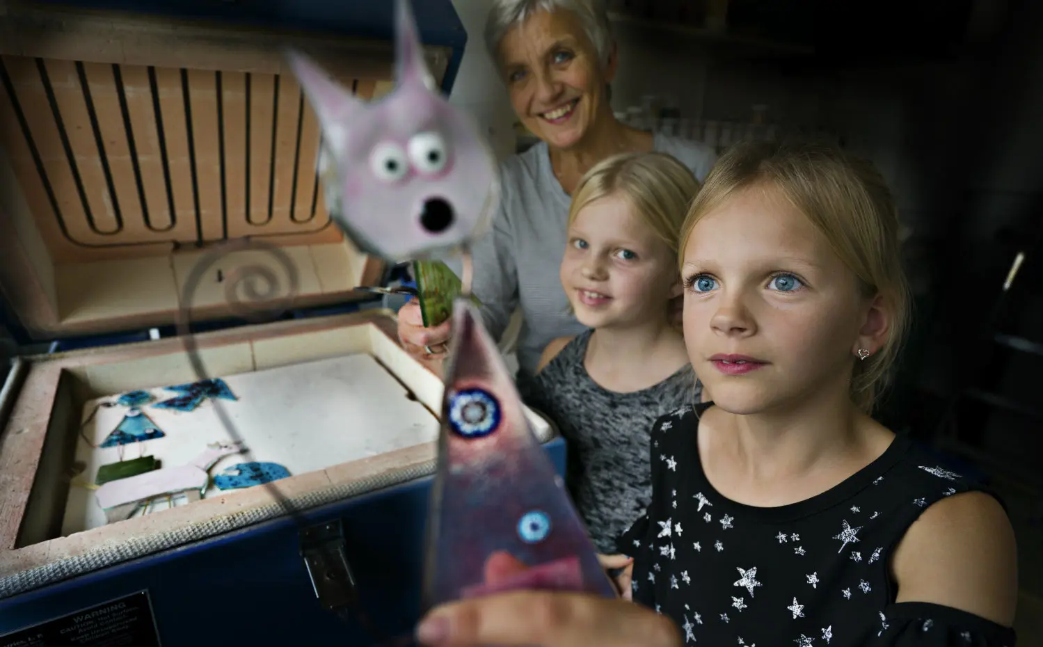 "Det bedst ved glasværkstedet er, at man kan lave lige, hvad man har lyst til," siger Alberte på ni år.