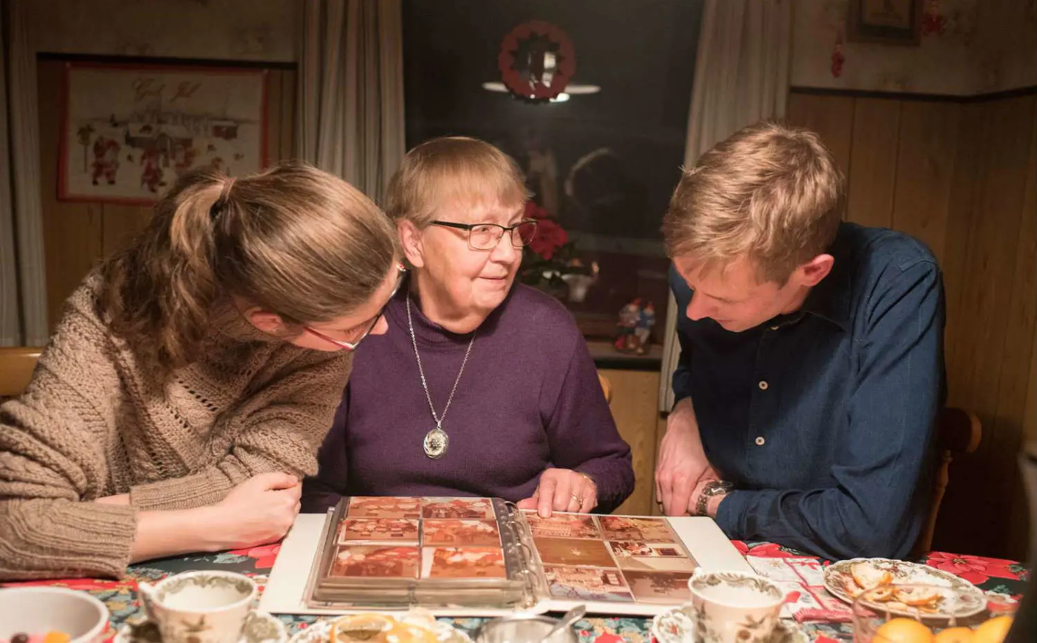 34-årige Nina Tørring sidder bænket ved køkkenbordet hos sin tidligere dagplejer 86-årige Grethe Pedersen i Herringe lidt uden for Ringe på Fyn. Hvert år kommer hun og seks til ni andre tidligere dagplejebørn på besøg til julehygge. For Nina er juletraditionen hos Grethe indbegrebet af den tryghed og hygge, hun oplevede dengang for snart mange år siden, hvor hun var dagplejebarn hos Grethe.