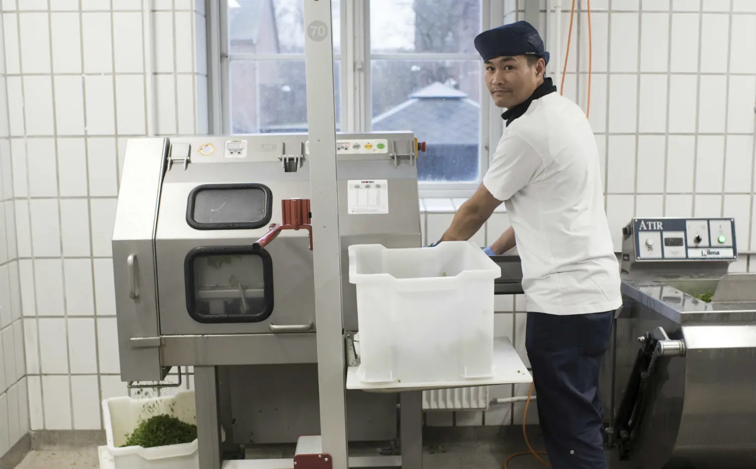 Vi havde en snitter, som man fyldte i fra oven. Det gav mere belastning af arme og skuldre. Tidligere var vi nødt til at købe nogle varer færdigsnittet. Nu kan vi klare det hele selv. Det sparer køkkenet penge på – og kokkene kan få det på præcis den måde, de vil have det.