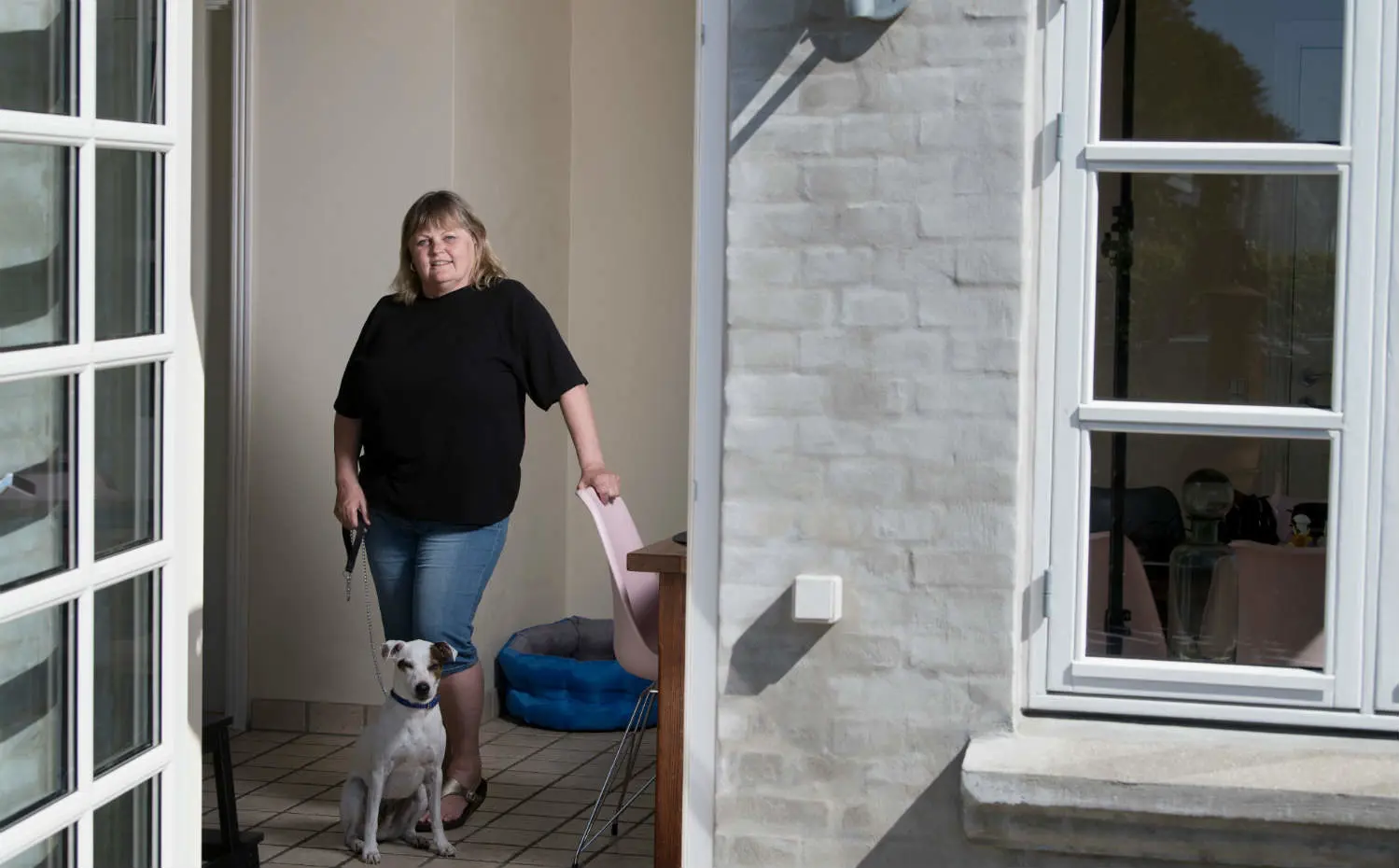 Derfor har overlægen på afdelingen for sjældne lungesygdomme på Aarhus Universitetshospital, hvor hun jævnligt går til tjek, anbefalet hende at gå i selvvalgt isolation. Med gåturene med hunden som eneste udgang.