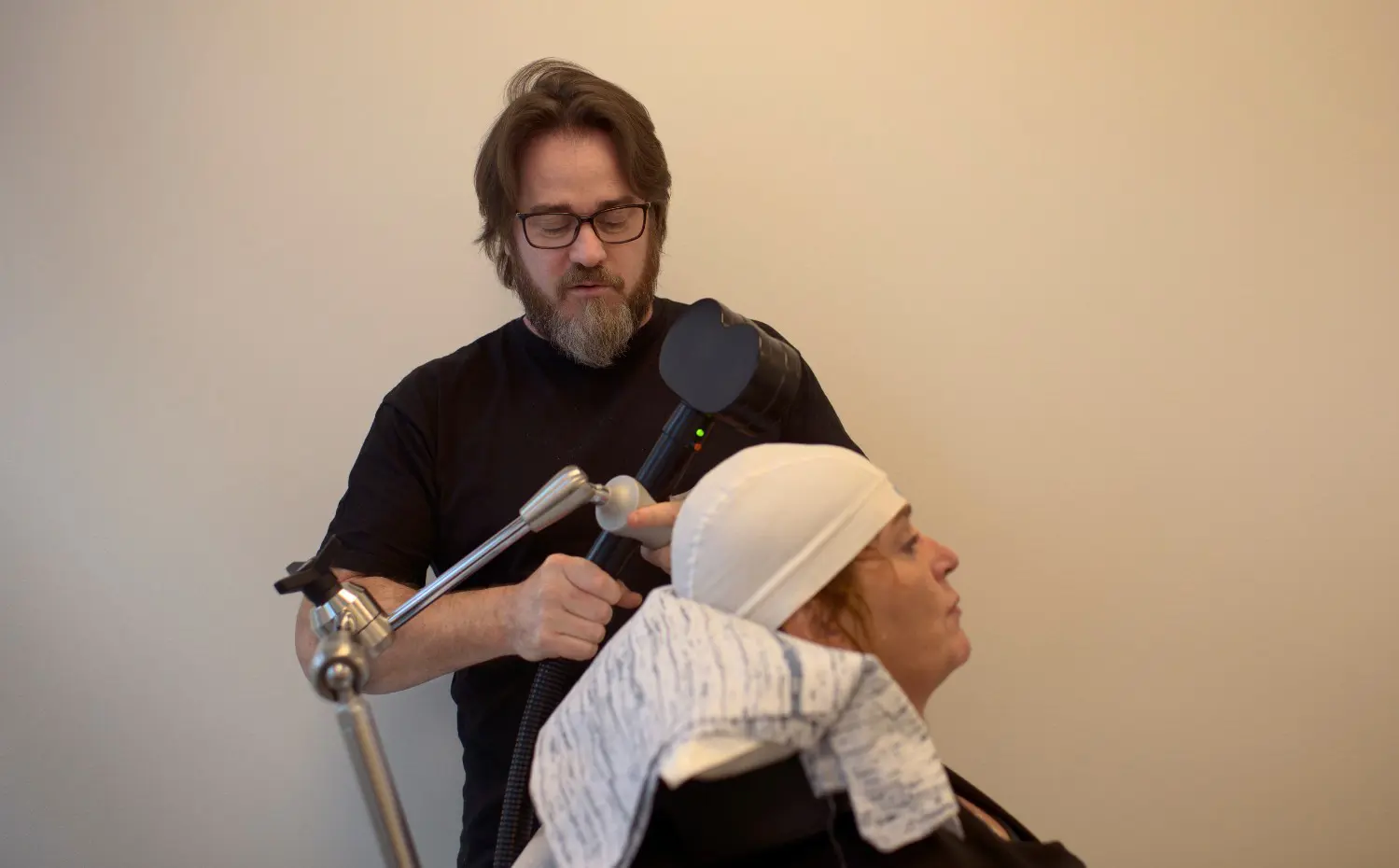 Frode Bjerkely er teamkoordinator for det TMS/ECT-team, der udover at lave TMS-behandlingen også laver elektrochok. Magnetbehandlingen finder sted på Aarhus Universitetshospital i Skejby, der lige nu det eneste sted i Danmark, hvor man kan få behandlingen i det offentlige sundhedsvæsen.