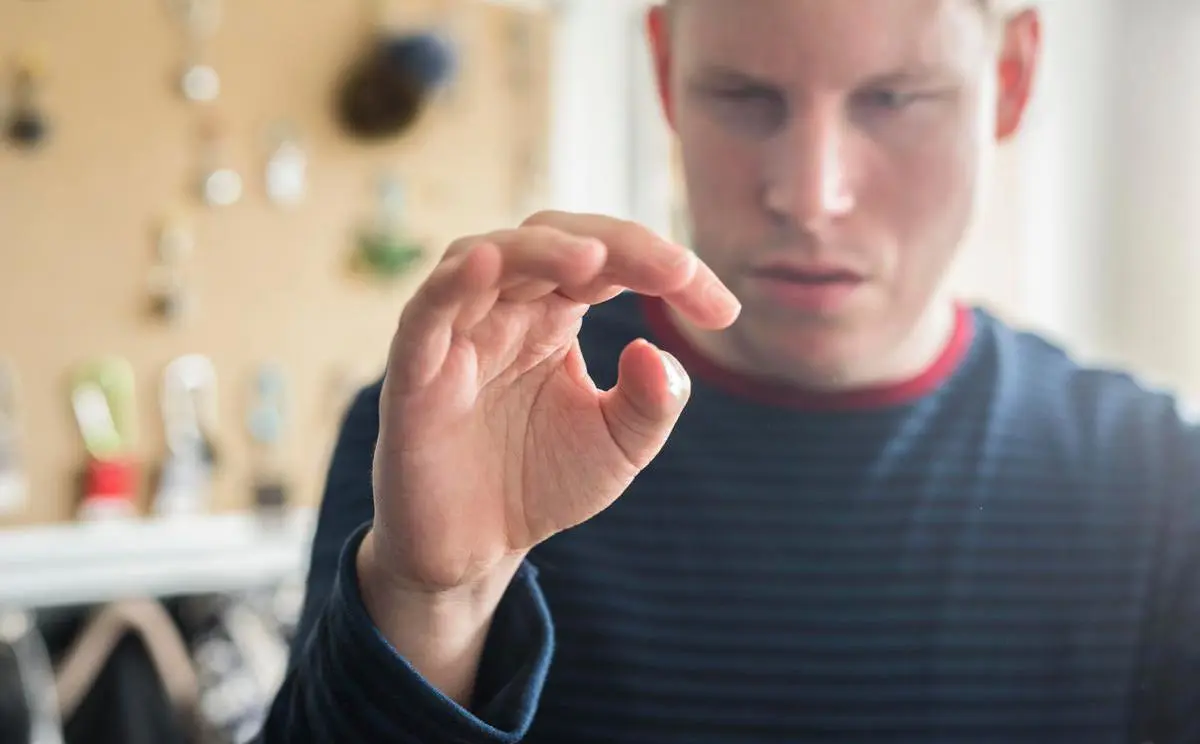 Peter Christian Hanberg begynder at fumle med de dimser, der ligger samlet på en stol. En øloplukker, en fidgetspinner, en plastikdims, som han kan lide at røre ved.