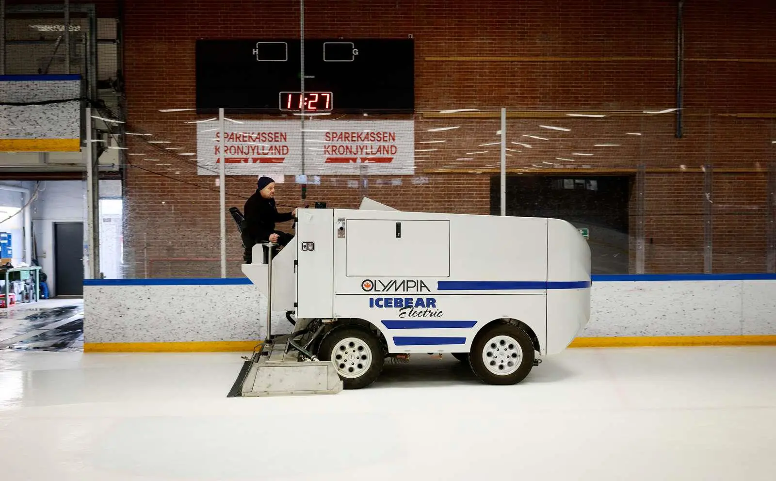 Isbilen – eller Icebear Electric, som den hedder – med Peter bag roret holder isen spejlblank og køreklar. Når banen er blevet for opkørt, suser han en runde, hvor isbilens store kniv sliber et tyndt lag is af og lægger et lille lag HOH-behandlet vand på, som så fryser til. Vandet er behandlet, så der ikke opstår alger. Isen, der bliver skrabet af, hælder Peter i en container, hvor den smelter, bliver filtreret og genbrugt.