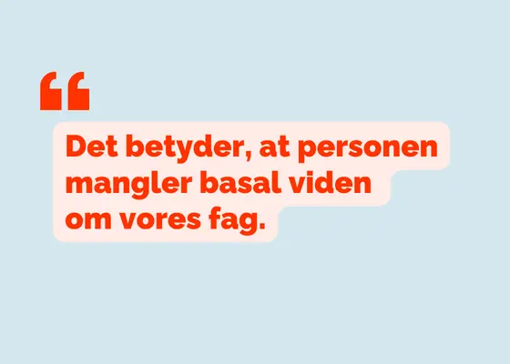 For det andet betyder det, at personen mangler basal viden om vores fag.