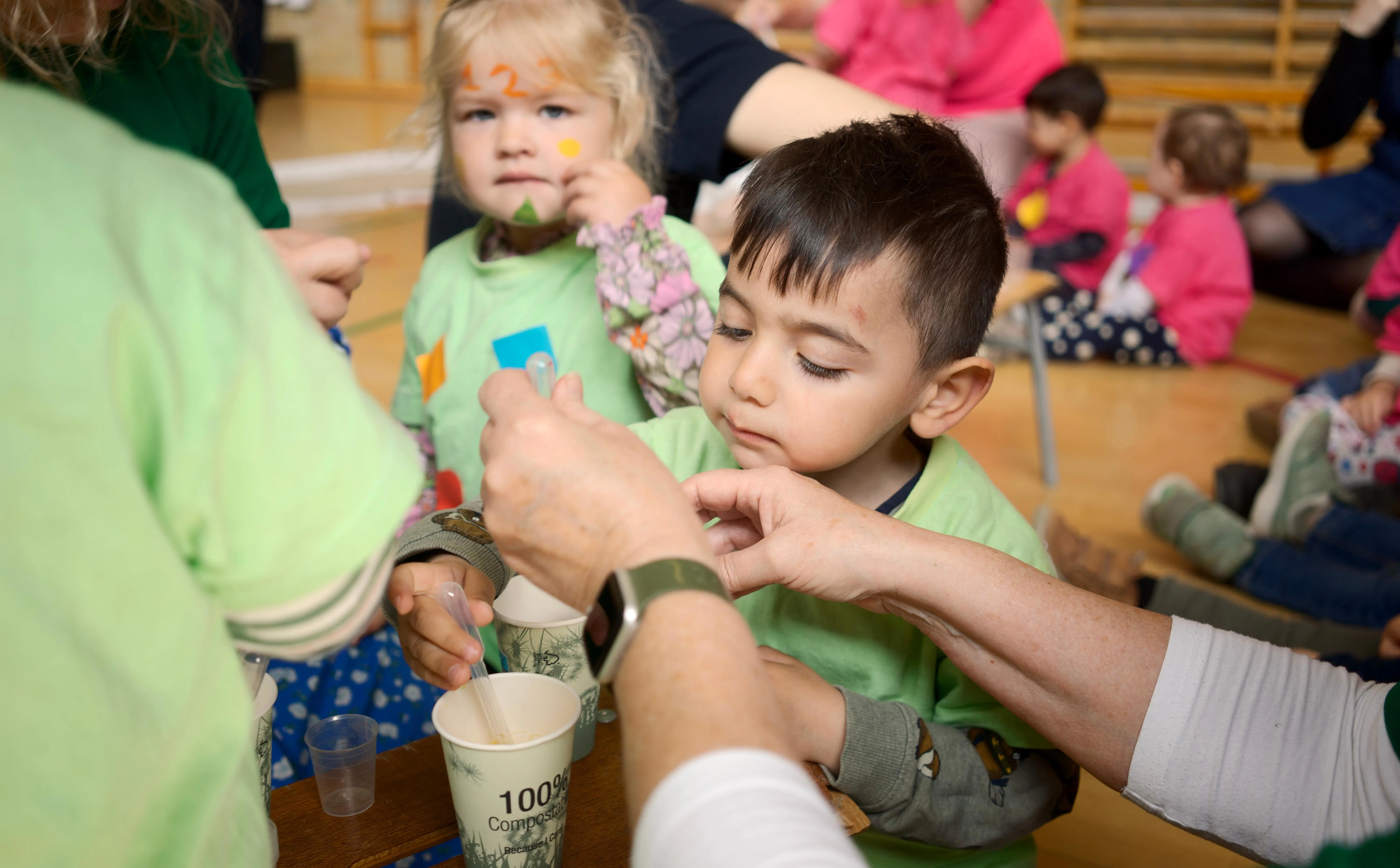 I dagplejen Skovbo i Aarhus har man inviteret forskere med reagensglas og røg for at fejre dagplejens dag. Men hvad får børn på 0 til tre år ud af videnskabelige forsøg?
