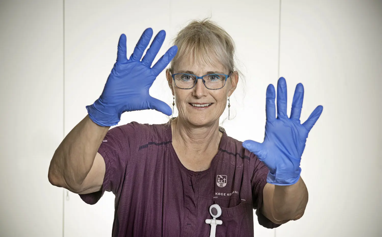 "Jeg har aldrig prøvet andet. I 2003, da jeg begyndte her, havde vi de der tykke gummihandsker med flonelsfoer. De skulle vaskes og bruges igen, så det er et kæmpe fremskridt at bruge de tynde, blå nitrilhandsker. Man skal jo kun bruge dem, når det er nødvendigt, og det er typisk kun nogle minutter af gangen."
