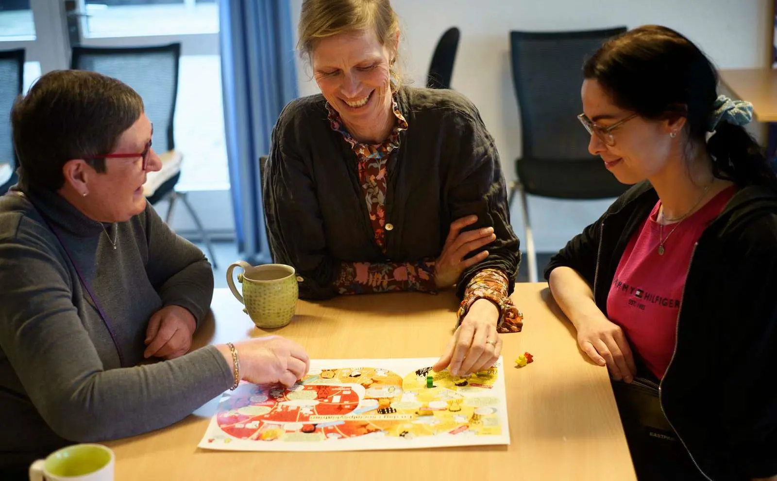 “Er I klar til at spille,” spørger Dorte Jensen og kaster terningen. Hun har sat sin afdelingsleder Britt Krull og kollega Susan Erben i stævne for at spille brætspillet ‘En dag i socialpsykiatrien’, som er at finde i den nye udgave af Fagbladet FOA.
