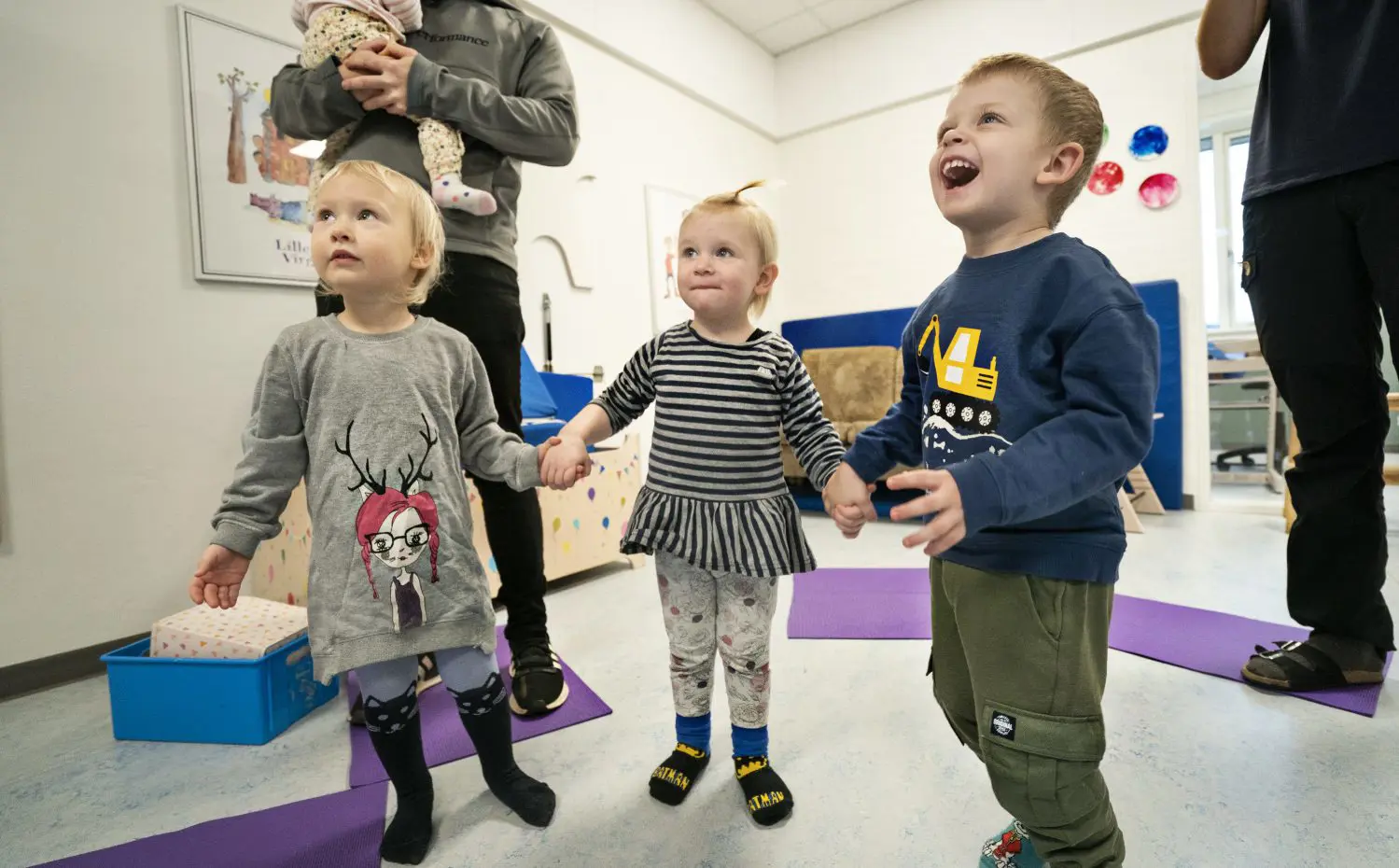 Han arbejder med de yngste børn i vuggestuen, og her holder han og pædagog Gitte Møller Stück sangsamling to gange om ugen. De begynder med Hej-sangen, hvor børnene klapper på lårene. Selvom nogle af børnene ikke har så meget sprog, er det tydeligt, at de lever sig ind i det. De kigger på de store, griner og efterligner de stores bevægelser.
