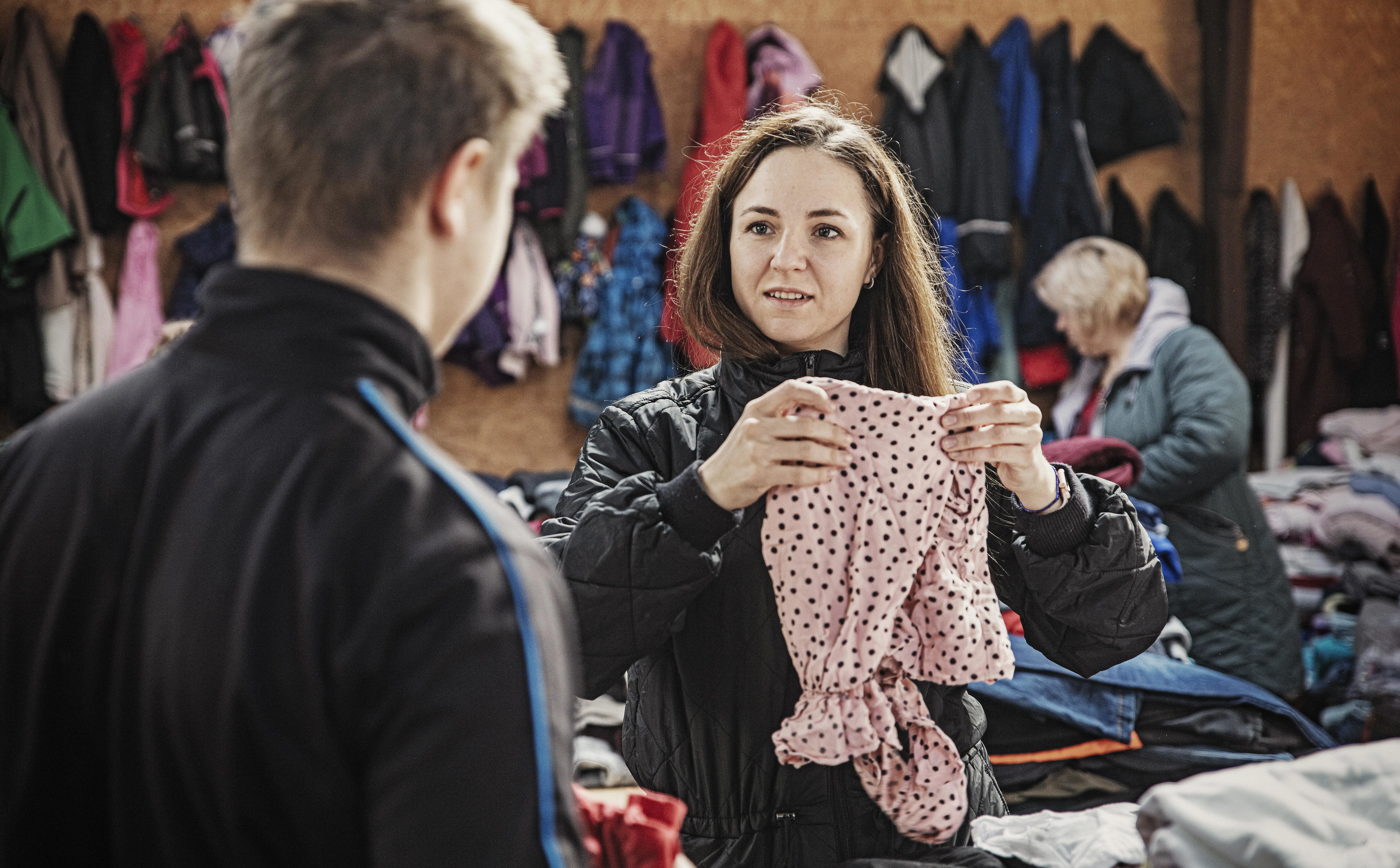 Via tilflytterservice i Esbjerg Kommune fik Inna kontakt til Troldehulen, en privat institution i Bryndum lidt udenfor Esbjerg, som har omdannet en hal til tøjlager med tøj, legetøj og hygiejneartikler blandt meget andet til flygtninge.