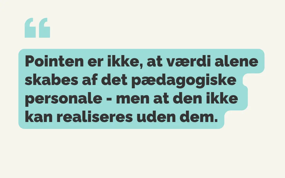 Pointen er ikke, at værdi alene skabes af det pædagogiske personale - men at den ikke kan realiseres uden dem.