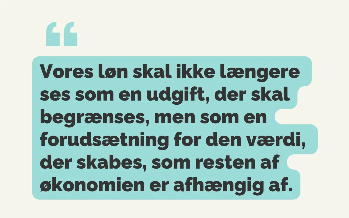 Vores løn skal ikke længere ses som en udgift, der skal begrænses, men som en forudsætning for den værdi, der skabes, som resten af økonomien er afhængig af.