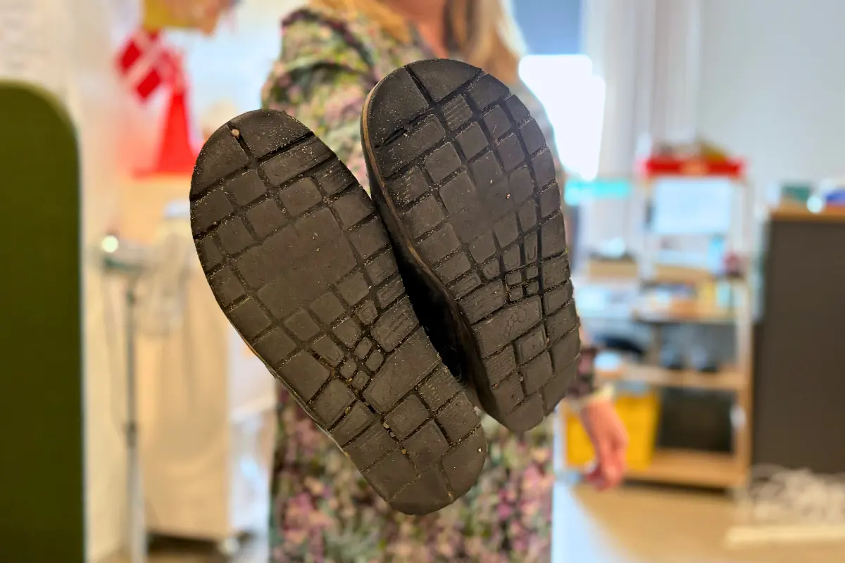 Og selvom Anja også bruger skoene uden for sit arbejde, er hun overbevist om, at det er dagene på job, der giver den største slitage.