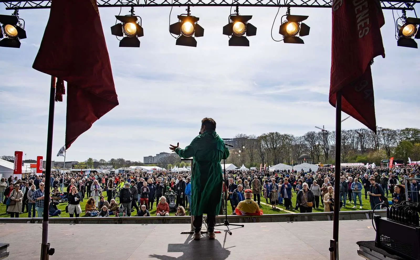 Umiddelbart var alt, som det skal være til en 1. maj-fest i Fælledparken i København: Solen skinnede, fanerne var røde, og publikum og politiske paroler var i vater.