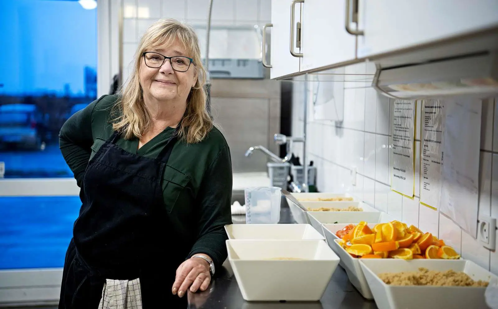 ”Jeg var lige blevet 63 år og kunne godt mærke, at jeg havde for mange timer. Men jeg havde ikke lyst til at stoppe, så det var perfekt, at den her mulighed dukkede op,” siger Gitte Neve Sørensen, som netop har rundet det første år som køkkenmedarbejder i Børnehuset Solsikken i Smørum i Nordsjælland.