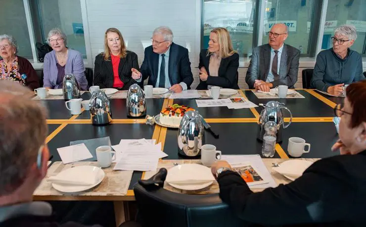 Der var lagkage og kaffe på bordene under besøget, mens frivillige fortalte om, hvordan det er at være besøgsven, og om de venskaber, der bliver knyttet mellem besøgsven og besøgsvært.