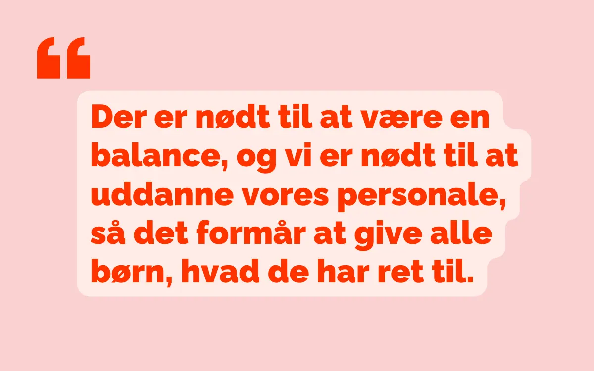 Der er nødt til at være en balance, og vi er nødt til at uddanne vores personale, så det formår at give alle børn, hvad de har ret til.