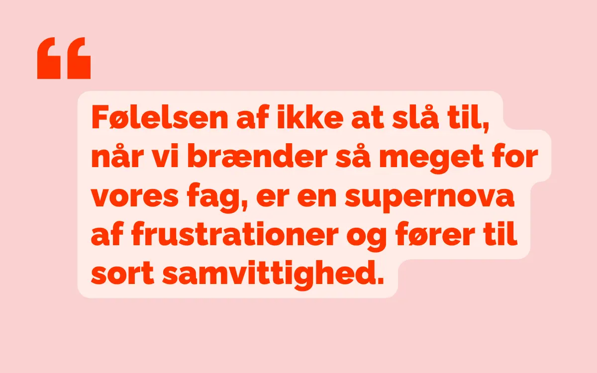 Følelsen af ikke at slå til, når vi brænder så meget for vores fag, er en supernova af frustrationer og fører til sort samvittighed.