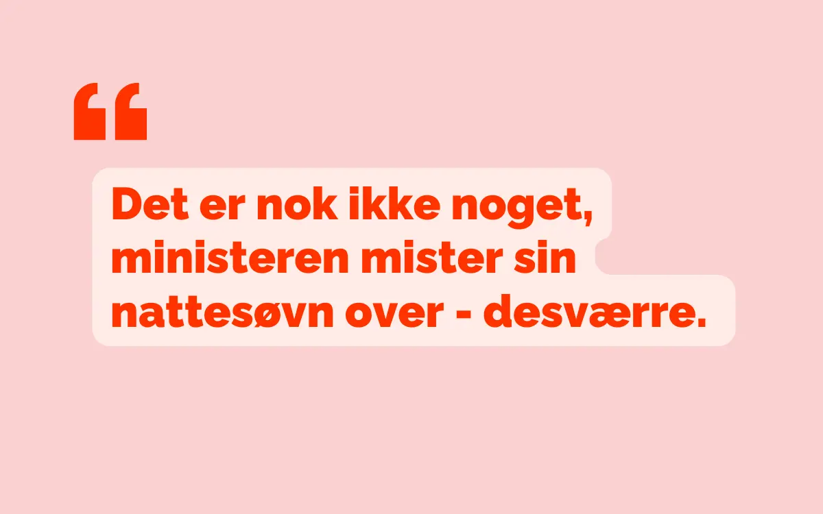 Hvem har så ansvaret? Det har regeringen. Men det er nok ikke noget, ministeren mister sin nattesøvn over - desværre.