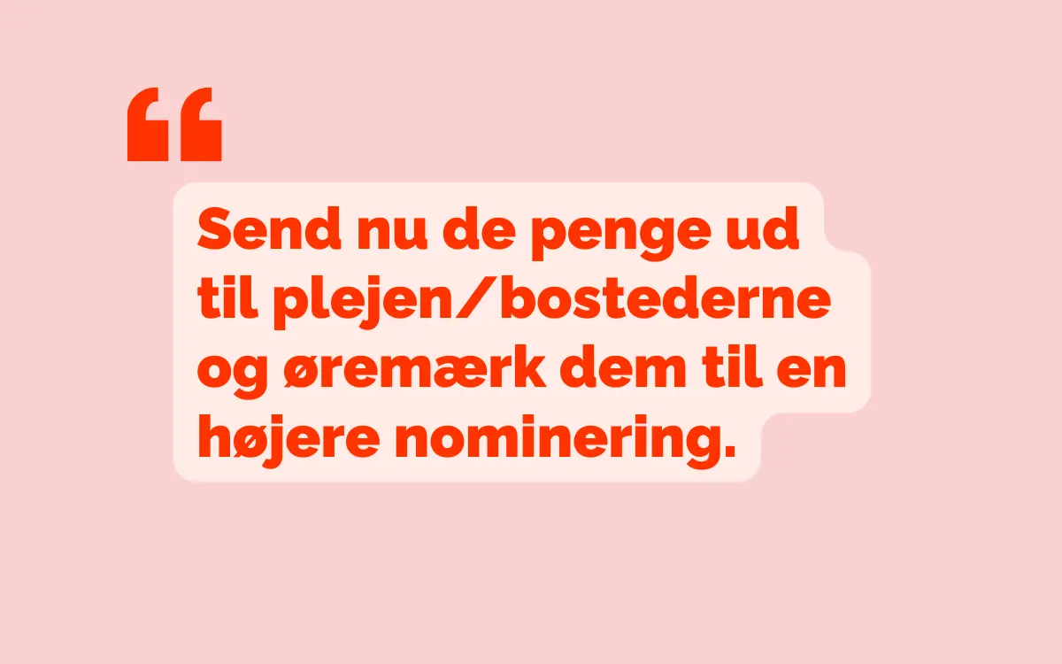 Send nu de penge ud til plejen/bostederne og øremærk dem til en højere normering.