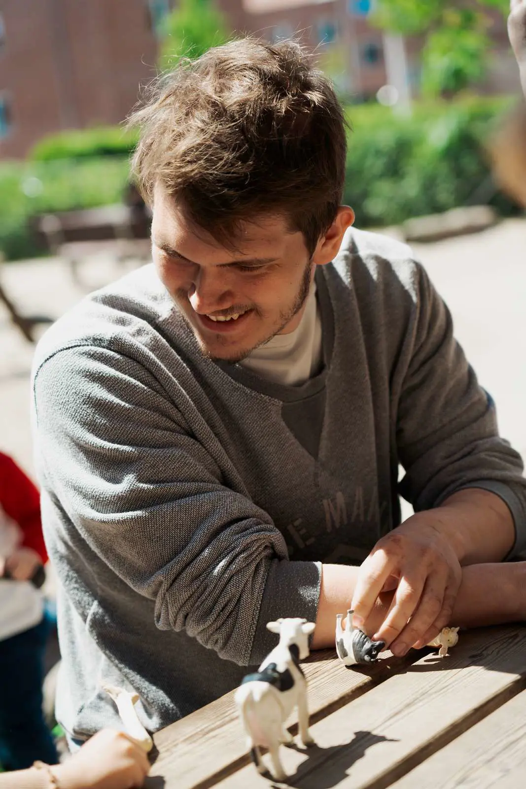 ”I begyndelsen tænkte jeg meget over, at jeg valgte et blødere fag fremfor et mere hårdt mandefag. Men pædagogisk assistent passede godt til mig, for jeg er ordblind og har svært ved at sidde koncentreret med et stykke papir og skrive. Så jeg ville prøve at udnytte mine styrker i stedet for at blive hæmmet af mine svagheder,” siger Noel Rathleff Hansen.