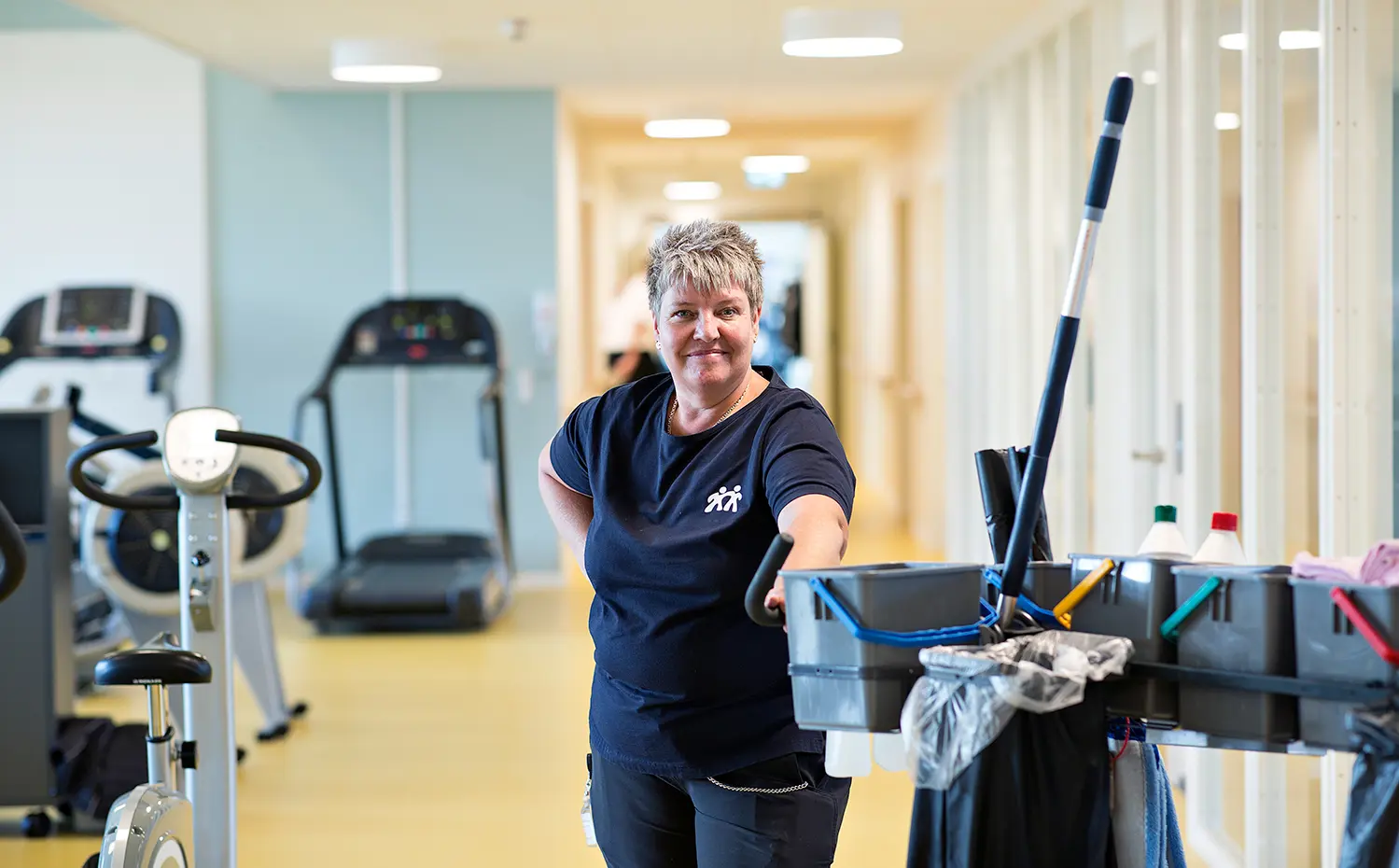 For centerets døgnrehabiliterings-stuer er stadig åbne og flere af hendes kolleger har stadig deres daglige gang i fælleslokalerne.Og derfor skal der stadig gøres rent.
