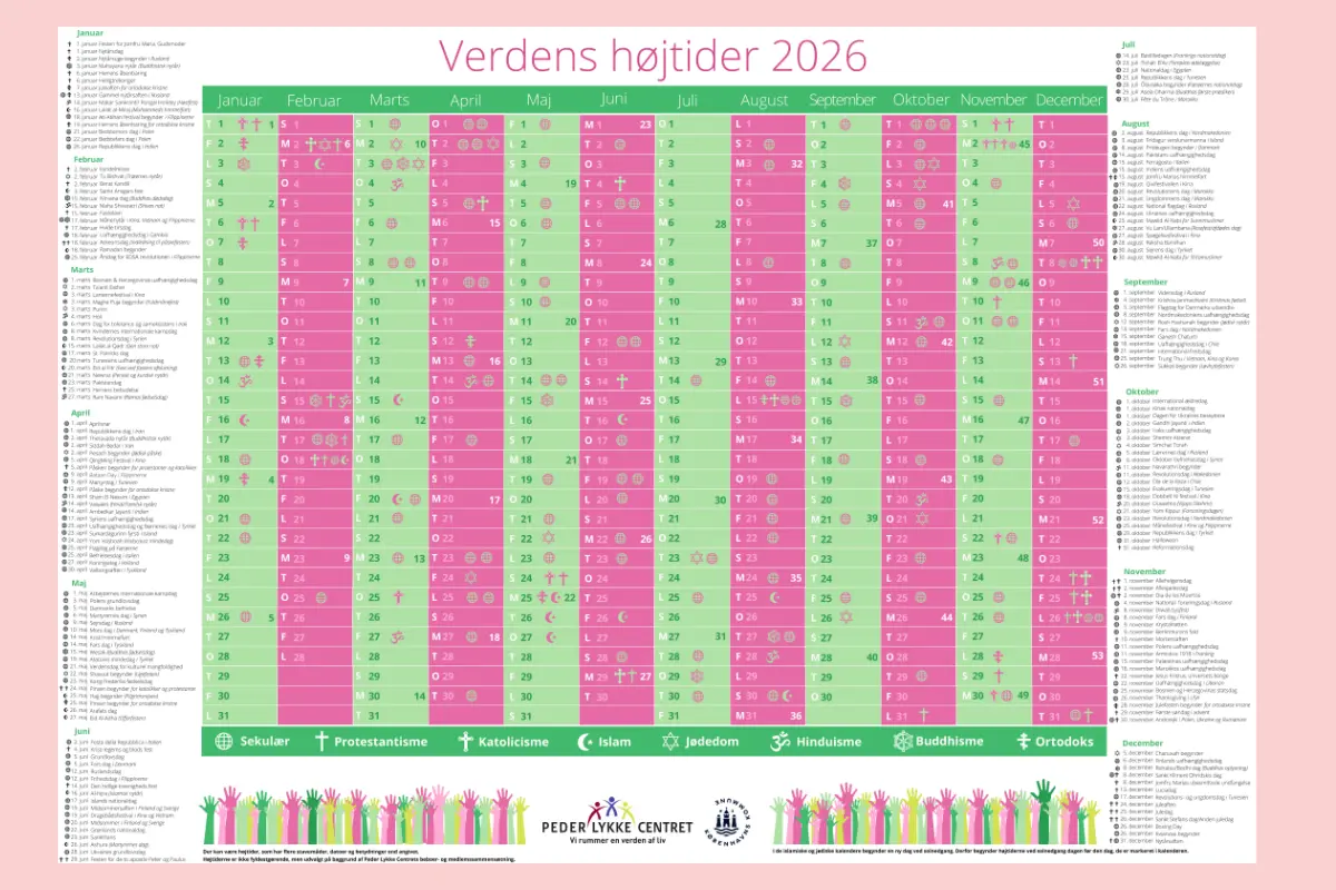 På kalenderen, som de på plejehjemmet har døbt ’Verdens Højtider’, er der nemlig plads til alle religiøse mærkedage og højtider.